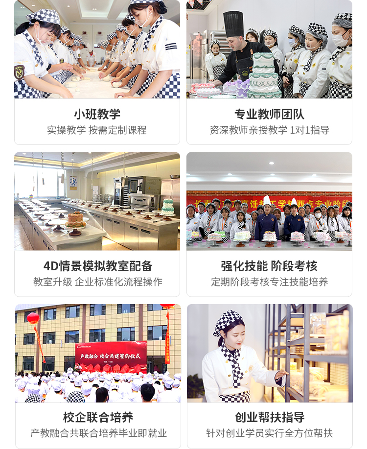 培养学员烘焙、裱花、饮品等实用技术,掌握各式西式点心的制作原理、工艺流程、操作手法及操作要领,塑造技术精懂创新的实力人才,培养有技术能创业懂经营的西点精英人才。