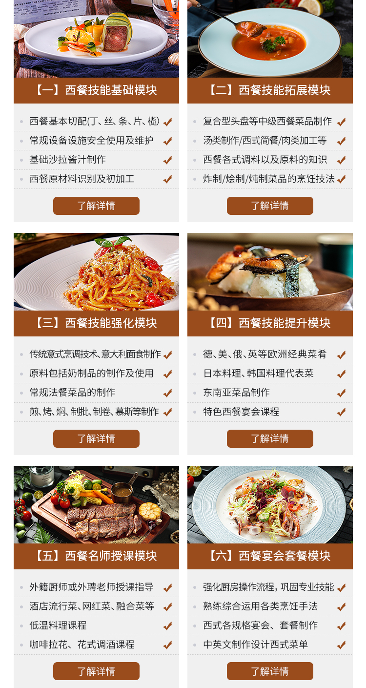 以培养专业技术全面、基本功扎实,了解厨房管理模式,具备创新能力的综合型西餐人才,毕业后能胜任西餐大厨、行政厨师长、高技能餐饮管理人才为目标。