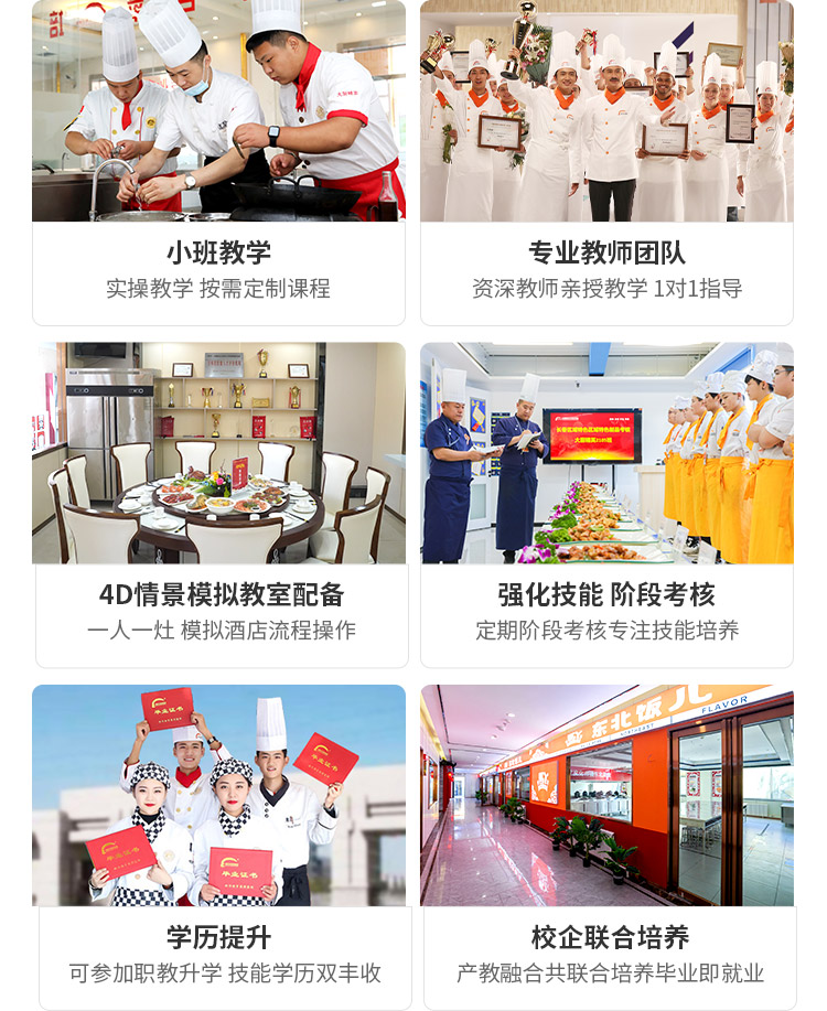 本专业以培养专业知识丰富、操作技能娴熟,具有厨房管理能力,合格毕业生引荐就业,培养创业能力的行政总厨、厨师长为目标,中高级证书免费考取,终身受用!